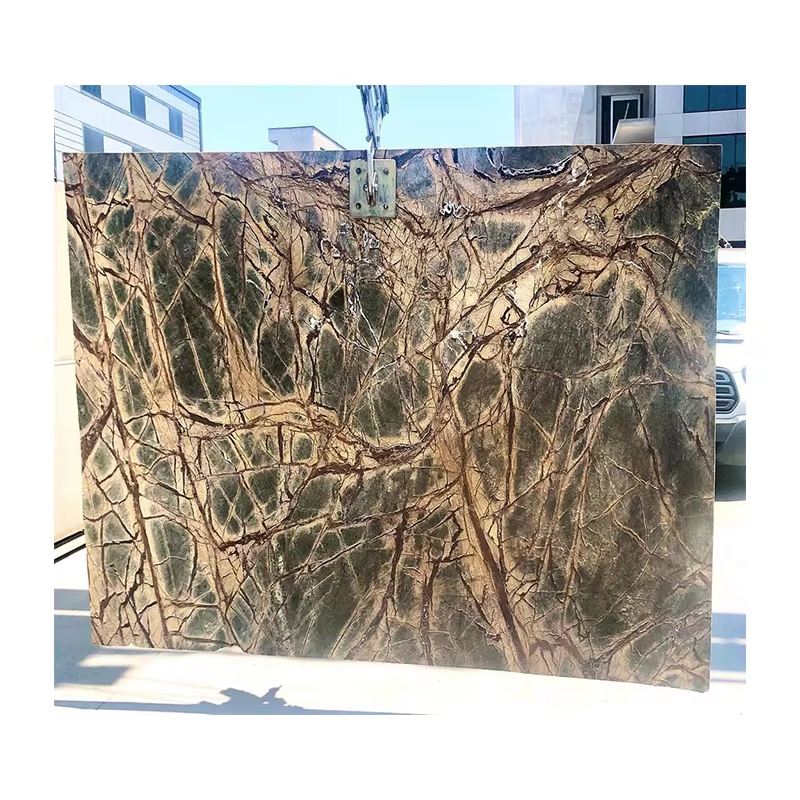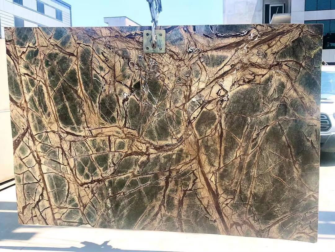 China Supplier's Modern Green Rainforest Brown Marble Slab Polished Surface 1-Year Warranty for Villa Kitchen Countertops supplier
