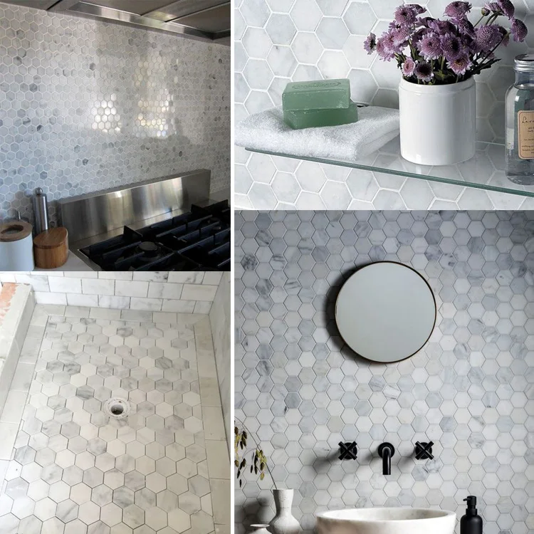 Backsplash Kitchen Tiles Natural Stone Mosaic Carrara White Marble Mosaic Tile |