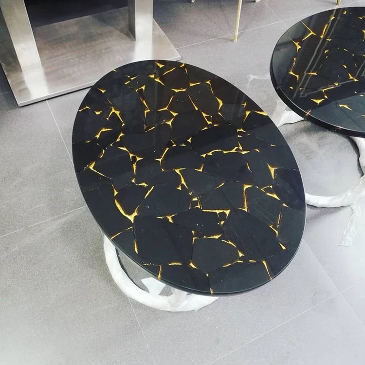 Name Natural Marble Athens Black Gold Plate Polished Marble Dining Table