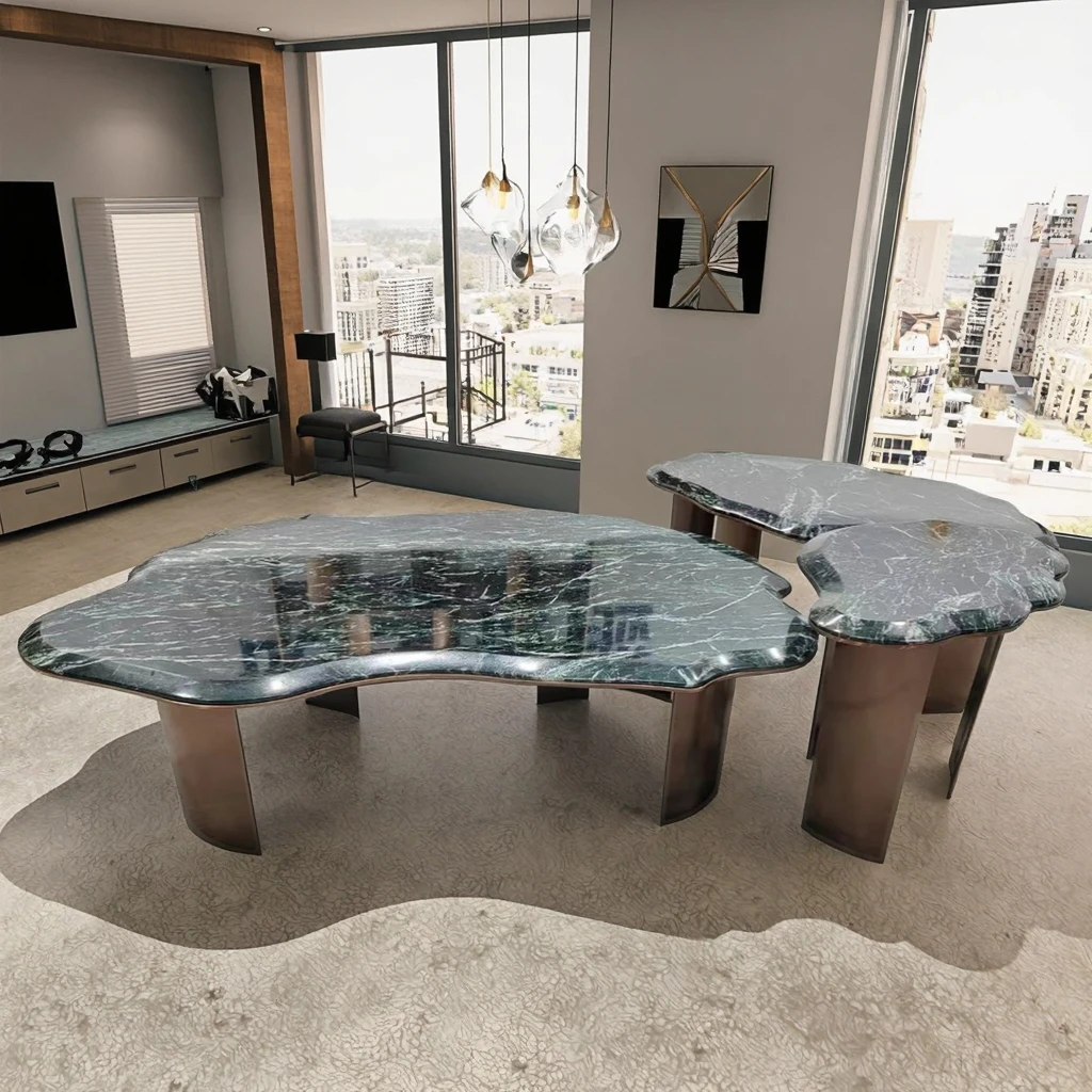 product ydstone luxury dining table in for  green featuring stone veneersuitable for home office-9