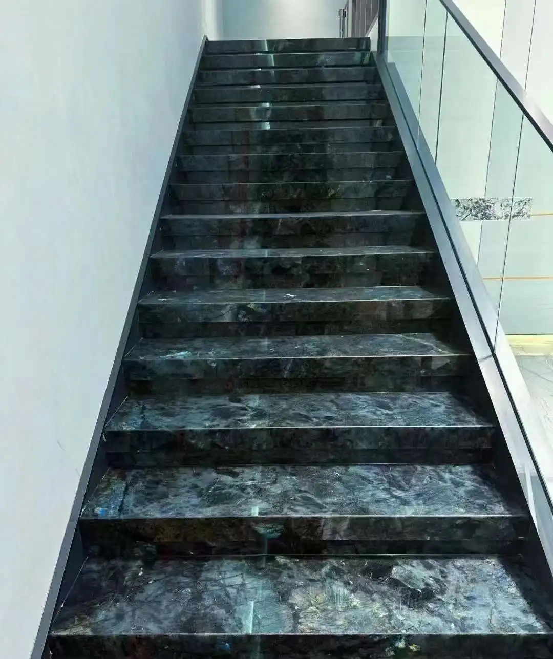 YDSTONE Modern Design Polished Lemurian Labradorite Blue Granite Slab Natural Stone Stair for Villas