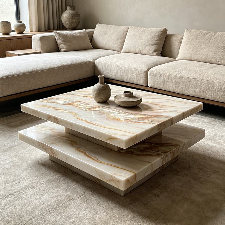 Whether you prefer a sleek double-layer square design, a modern oval shape with a gold metal base, a minimalist oval slab table, or a statement live-edge rectangular piece, the YDSTONE Luxury Design Engineered Quartz Coffee Tables offer versatile styles to complement any interior decor, from minimalist to opulent. Each table is customizable in size, edge profile, and base design to fit your unique project needs.