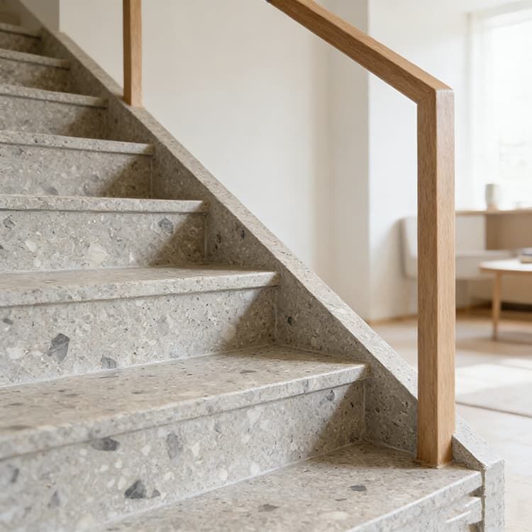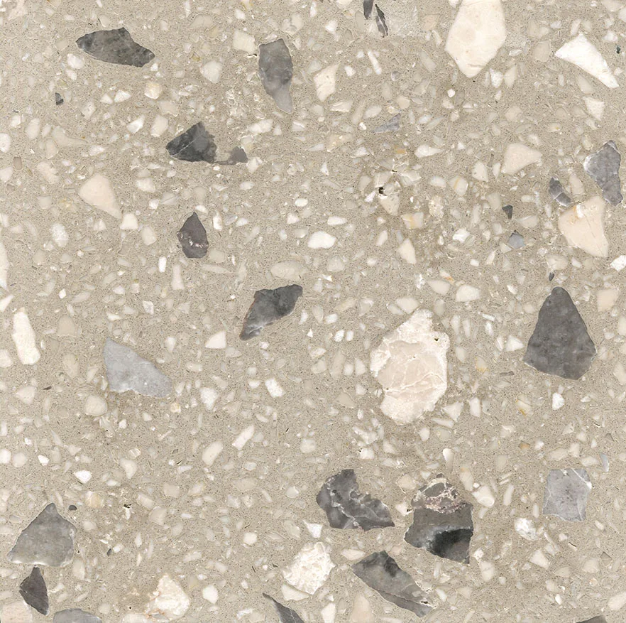 It consists of chips of marble, quartz, granite, glass, or other suitable material, poured with a cementitious binder (for chemical binding), polymeric (for physical binding), or a combination of both. |
